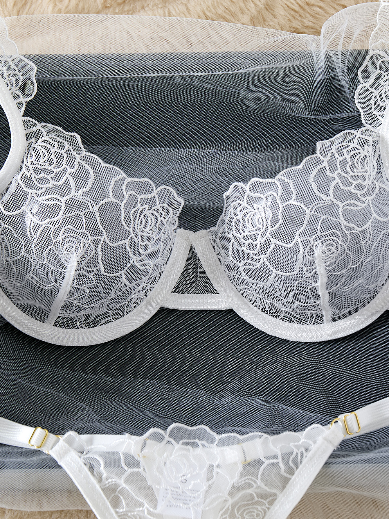 Sublimez vos soirées avec l’ensemble Élégance Florale, une lingerie raffinée qui allie délicatesse et sensualité.
